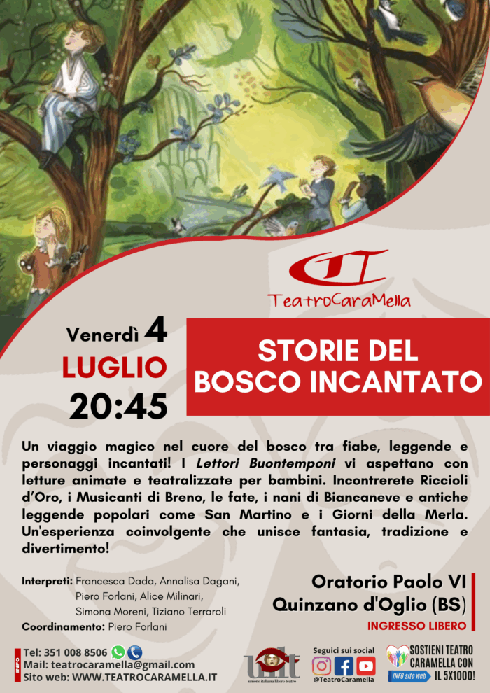 Letture animate e teatralizzate per bambini che narrano di un viaggio magico nel cuore del bosco tra fiabe, leggende e personaggi incantati!